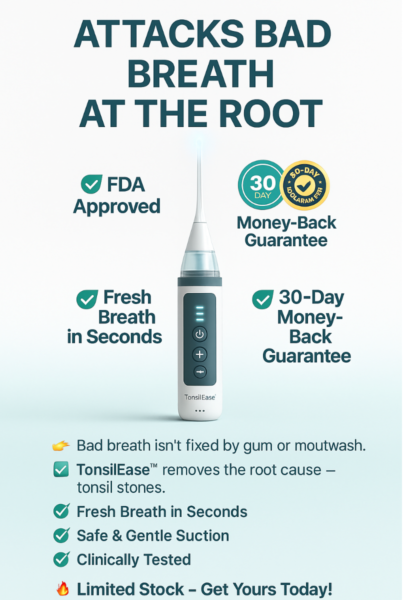 For years, people have suffered in silence with tonsil stones — embarrassed by bad breath, throat pain, and low confidence. TonsilEase™ has changed that. Thousands now enjoy fresh breath, healthy tonsils, and the freedom to smile again. Don’t wait until the problem gets worse — fix it today.